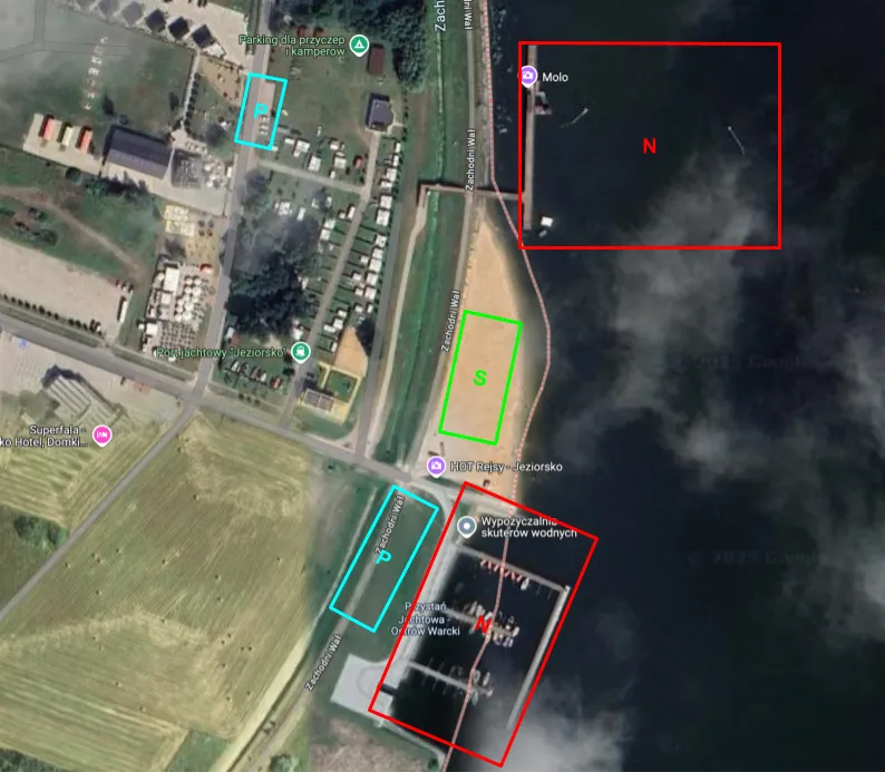 Ostrów Warcki to niezła opcja gdy poziom wody jest wysoki. Do startu dostępna jest piaszczysta plaża. Poza ciepłymi, słonecznymi weekendami jest ona raczej pusta. Plażowicze pojawiają się w okresie wakacyjnym. Sam start jest stosunkowo bezpieczny, ponieważ jest sporo miejca. Problemy pojawiają się gdy trzeba wypłynąć, między prętami od wake parku, a mariną nie ma dużo miejsca. Gdy wieje on-shore i pływają inni, trzeba posiadać dobre umiejętności ostrzenia pod wiatr, żeby odpłynąć na bezpieczną odległość od brzegu.